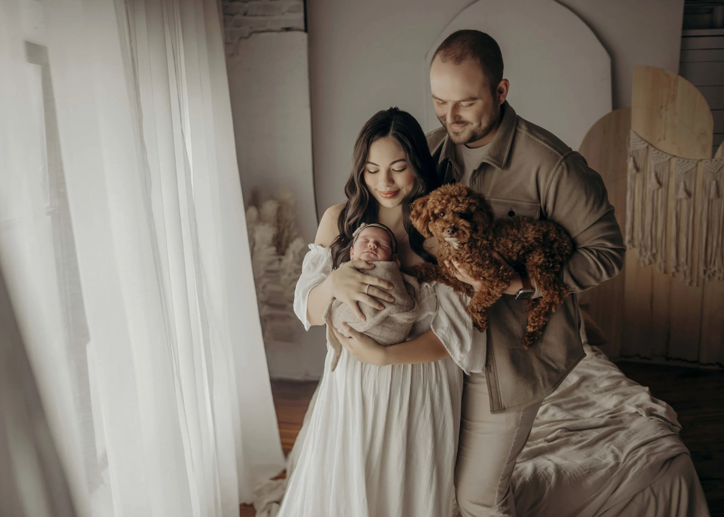It is such a pleasure of mine to provide a studio wardrobe for my clients to borrow from. I have around 65 + gowns for moms, shirt options for dads, and a large variety of all sorts of options for boys and girls for all ages. Most of my gowns range from XS to 3x, leaving us the option to clip the dress if it is too large, yet they are big enough for many body types. My style tends to be very neutral, earthy, with muted tones and flattering. I love to dress you and your whole family and take one less thing off of your busy list! Here are a few of my options to look through and pick out a couple to let me have out for you to try before our session!